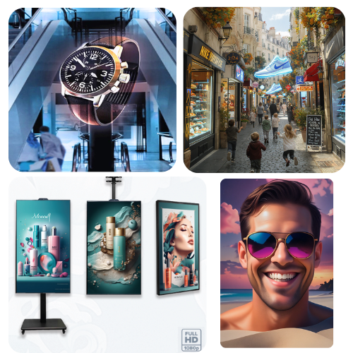 - Support digital adapté (LCD, LED, transparent ou holographique)